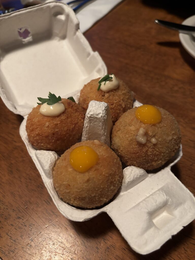 Croquetas (4pcs) This dish comes with two Jamón and two mushroom mini-croquettes. I was surprised to see them served in an egg carton! But while researching for a trip to Barcelona, I noticed some tapas bars there do the same thing. Both flavors were perfectly salty and made for excellent wine snacks. Definitely a must-order at B UNO.