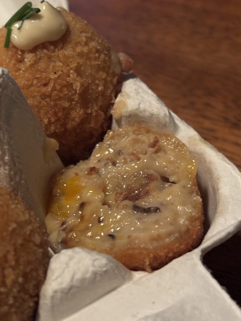 하몽, 버섯이 들어간 미니 크로켓이 2개씩 총 4개짜리 메뉴.