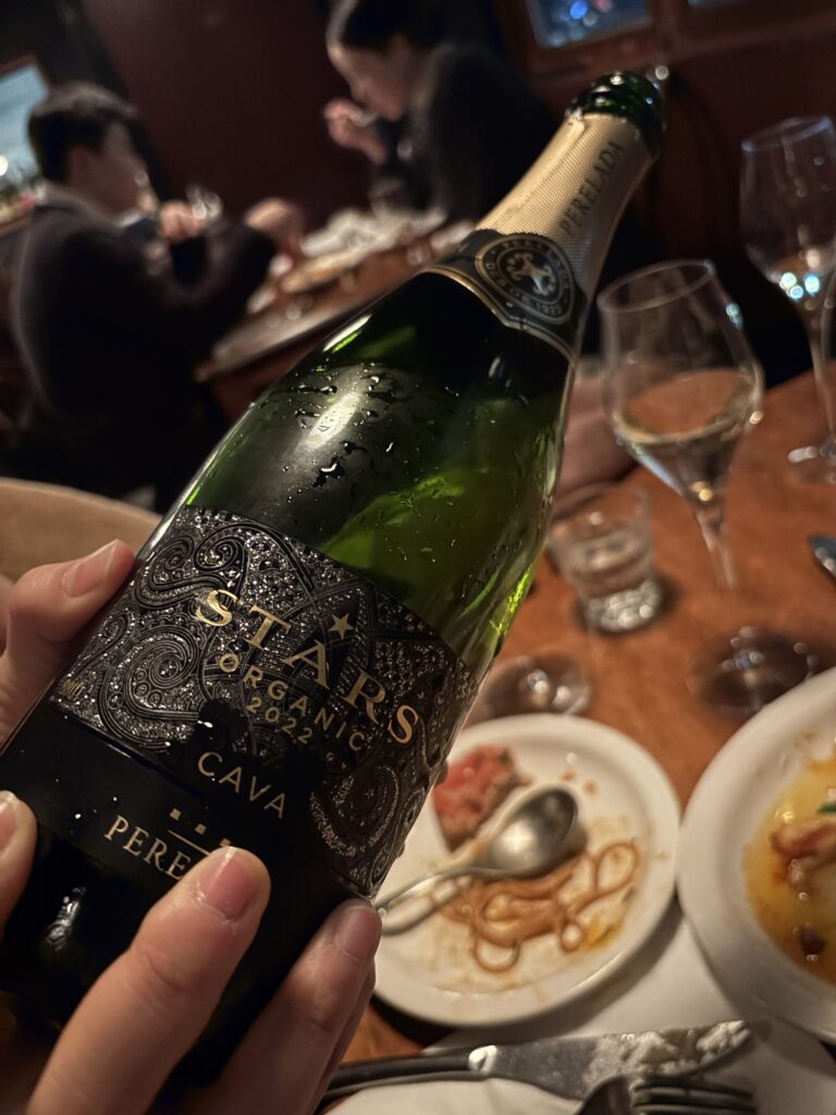The wine wasn’t fully chilled yet, so the staff immediately placed it in an ice bucket. I managed to snap a photo of the label later: Castillo Perelada Cava Stars 2022.